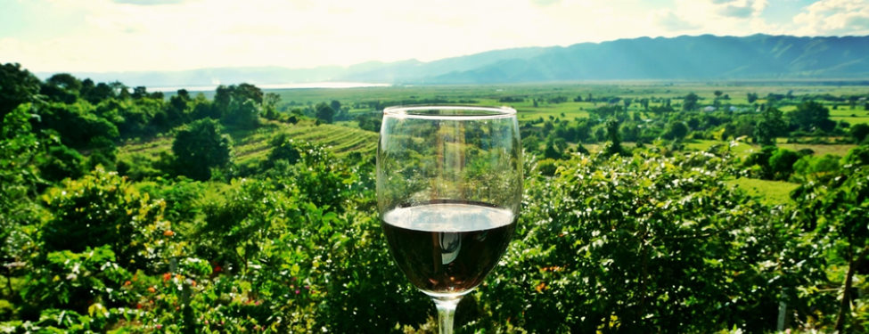 Den Wein an einem schattigen Plätzchen genießen