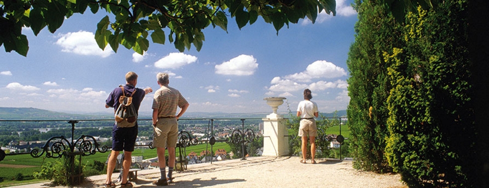 Im Rheingau sind zahlreiche Zeugnisse einer großen Weinhistorie zu finden, etwa das im 18. Jahrhundert errichtete Schloss Johannisberg, in dem heute die Weingüterverwaltung ihren Sitz hat. Im Bewusstsein dieser Weintradition beginnen wir dort unsere elf Kilometer lange Wanderung nach Kloster Eberbach. Im Gegensatz zu manch anderer Wanderroute handelt es sich um eine eher leichte Strecke.