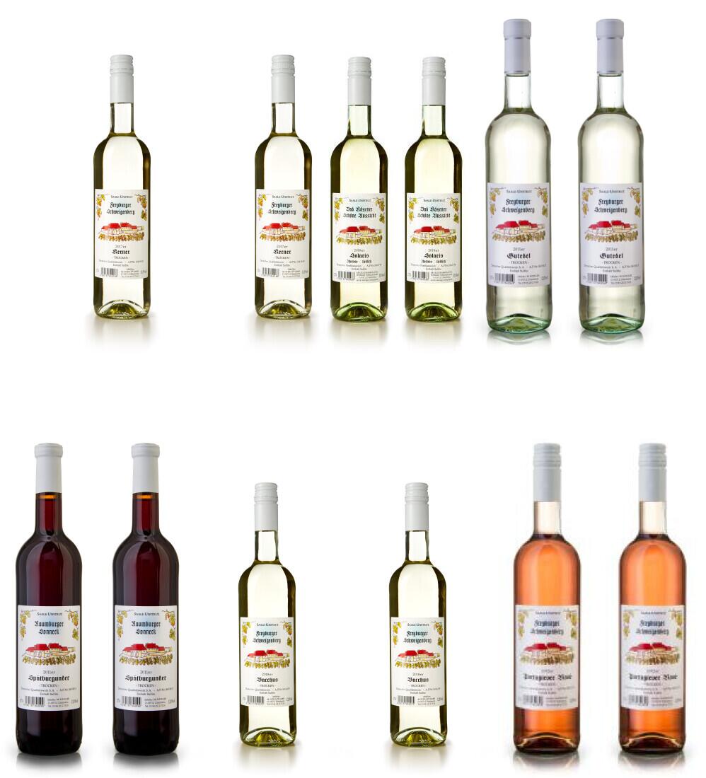 12 verschiedene Flaschen Saale Unstrut Weiß, Rot und Rosewein trocken.