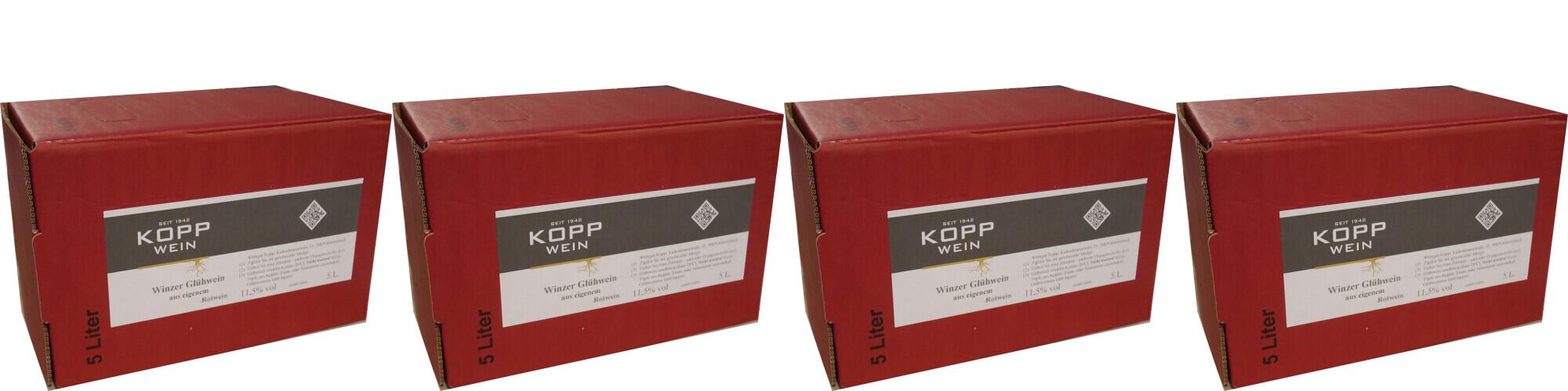 | 4 × 5 Liter roter Winzerglühwein aus der SPÄTBURGUNDER Rebe Pfalz 12,5%vol Weingut KOPP (Glühwein, 5 Liter) | Lebensmittel-Kennzeichnung |