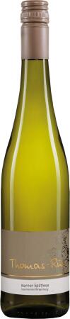 Eisbonbon-, Aprikose- und ein Touch von Johannisbeere in Verbindung mit herlichen Apfel-, Pfirsich- und Citrusaromen, machen diesen Wein zu einer wahren Fruchtbombe. Die Süße ist schön eingbunden und lässt diese Spätlese zu einem Leckerbissen werden. Ein süffiger Wein, saftig, spritzig und frisch im Geschmack.