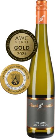Die Rebstöcke von diesem Wein sind schon 35 Jahre alt und wachsen auf steinigen, kalkdurchsetzten Böden auf dem Nieder-Olmer Klosterberg in der Lage "Am Hübrich". Flachbogenerziehung, grüne Lese und entblättern der Traubenzone tragen zur Ertragsreduzierung und Qualitätssteigerung bei. Die Trauben werden per Hand gelesen und nur die vollreifen ausgewählt. Das Lesegut wird leicht angequetscht und für 48 Stunden mazeriert, um die feinen Sortenaromen aus den Beerenhäuten zu lösen. Danach wurde die Maische mit einer pneumatischen Kelter gepresst. Der Most kam direkt in einen kleinen Edelstahltank und wurde spontan vergoren. Die lange Lagerung auf der Feinhefe (sur lie) kennzeichnet den Charakter dieses Rieslings. Die kalkhaltigen Böden verleihen dem Riesling eine mineralische Kraft, die man auch beim ersten Schluck im Mund spürt.